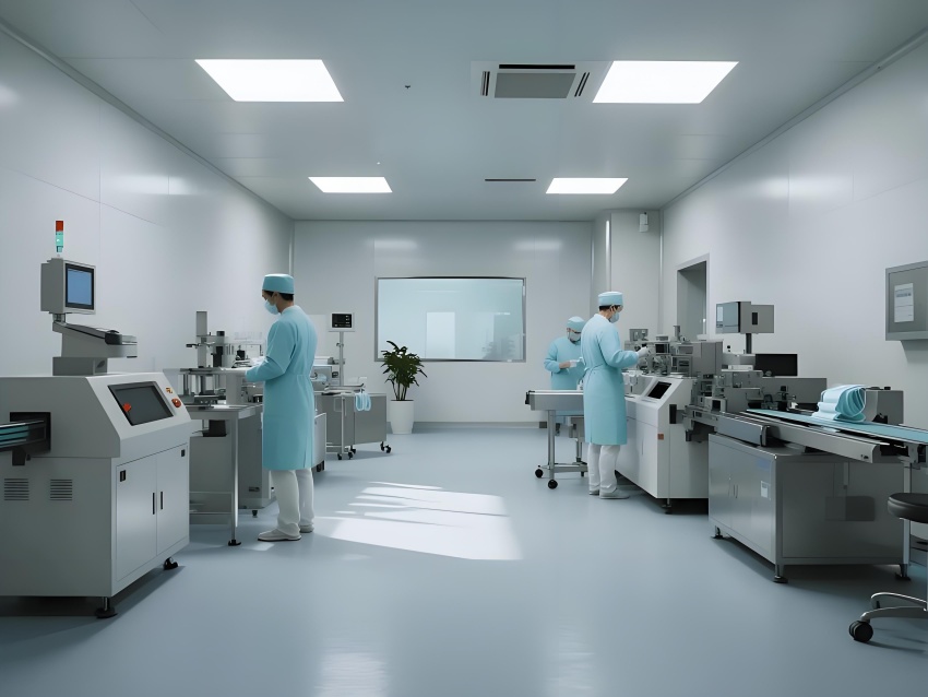 本潔凈車間設(shè)計采用現(xiàn)代工業(yè)極簡風(fēng)格,強調(diào)功能性與潔凈度。主色調(diào)選用淺灰藍(墻面)與純白(頂面)的搭配,營造冷靜專業(yè)的氛圍,局部用淡綠色做視覺緩沖。