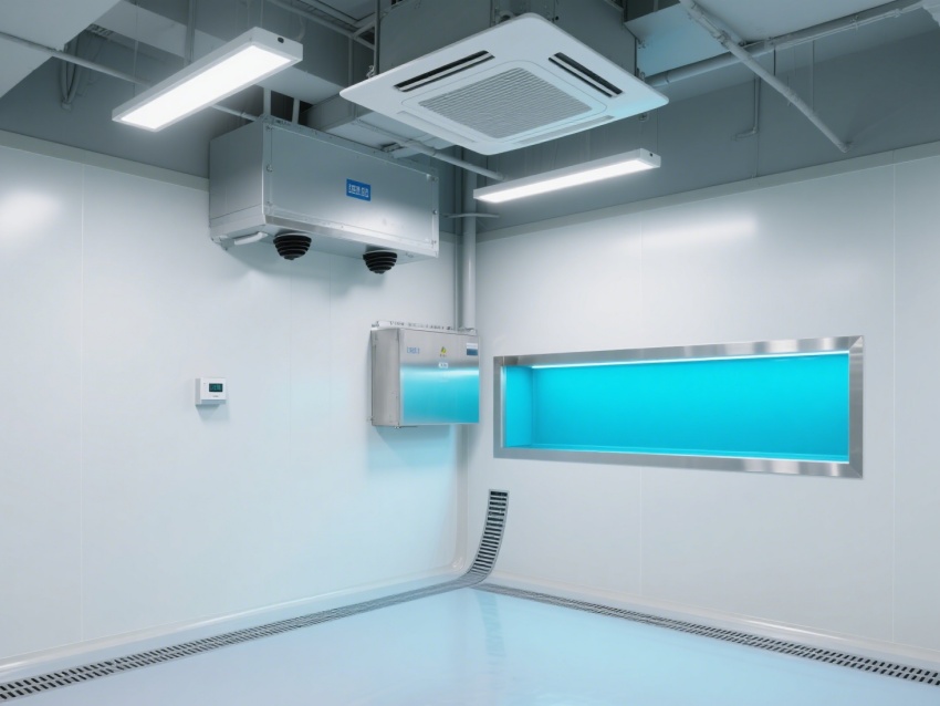 空間布局兼顧功能性與規(guī)范性,各類設施接口配置充足,圓弧墻角設計避免積塵,藍色標識線清晰劃分區(qū)域。整體工程通過溫濕度精準控制、潔凈環(huán)境打造與智能監(jiān)控的協(xié)同,為電子、光學、精密制造等對環(huán)境敏感的產(chǎn)業(yè)提供了穩(wěn)定可靠的生產(chǎn)空間,是保障產(chǎn)品品質(zhì)與生產(chǎn)精度的關(guān)鍵支撐單元。