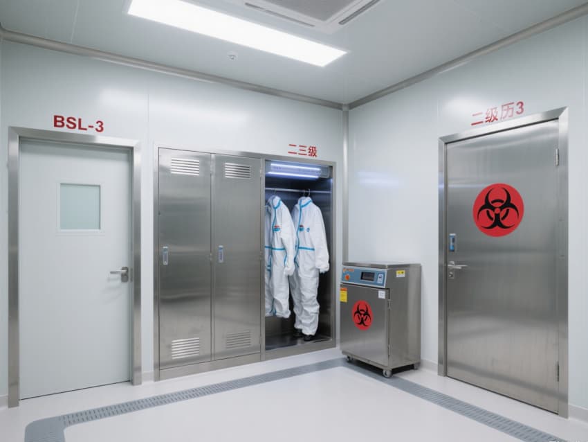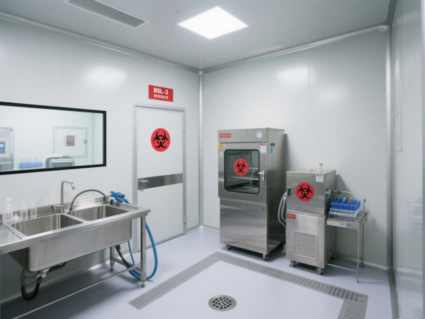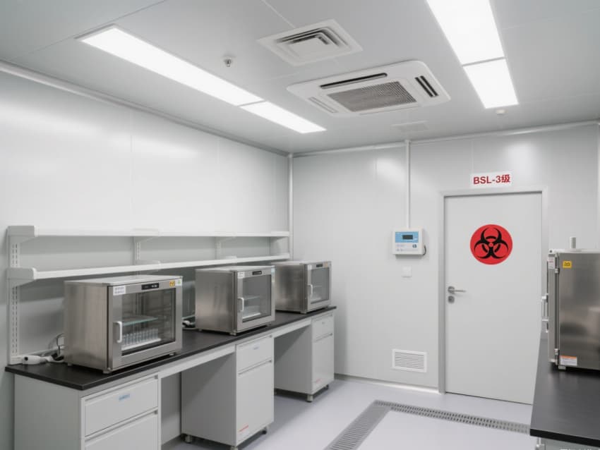 實(shí)驗(yàn)室核心區(qū)域配備負(fù)壓生物安全柜、雙扉高壓滅菌器,確保微生物操作與廢棄物處理安全;頂部高效空氣過濾器(HEPA)實(shí)現(xiàn)每小時(shí)15-20次空氣置換,尾氣經(jīng)消毒處理后排放,避免氣溶膠擴(kuò)散。互鎖式潔凈門、雙層鋼化玻璃觀察窗與應(yīng)急噴淋裝置,形成全流程安全保障。?