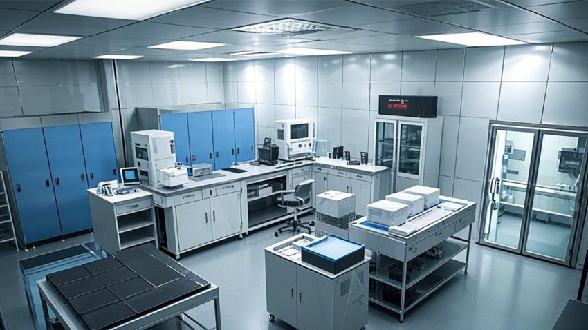 1000平方米電子無塵車間,現代科技風格,干凈整潔,光線明亮。核心生產區占70%,輔助區占20%,辦公區占10%。核心生產區:防靜電環氧地坪(淺灰色),白色彩鋼板墻面和天花板,垂直層流氣流,頂部高效過濾器(HEPA),不銹鋼工作臺,設備排列整齊。輔助區:更衣室(淺藍色墻面,衣柜和長凳),風淋室(透明玻璃門,不銹鋼墻面),物料緩沖間(傳遞窗,白色墻面)。辦公區:玻璃隔斷,現代簡約辦公桌,防靜電PVC地板(淺色),LED面板燈。整體色彩:白色、淺灰色、科技藍點綴。