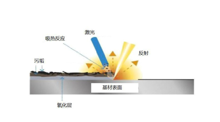 1、激光器發射的光束被需處理表面上的污染層所吸收。