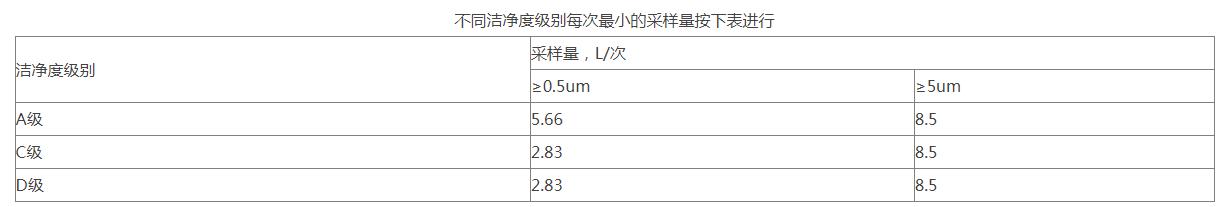 測試步驟:要在潔凈室(區)凈化空氣系統已處于正常運行狀態,潔凈室(區)應沒有生產人員的情況下進行測試。按照塵埃粒子計數器標準操作規程測量大于等于0.5um、大于等于5um粒子濃度。測量是靜態測試,要在HVAC系統至少運行30分鐘后開始采樣,按照少量采樣點數在房間內均勻分布,總采樣次數不得少于3次。