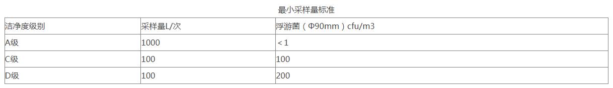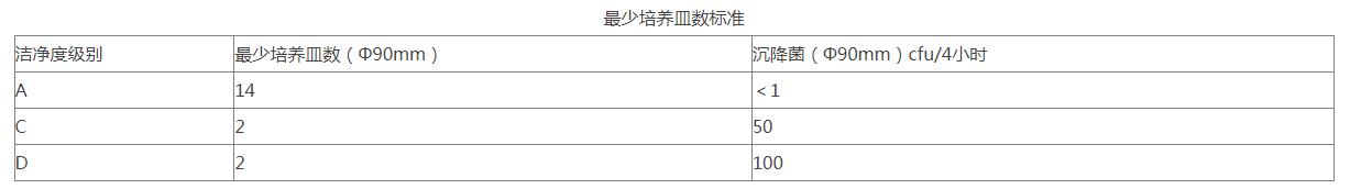 11、采樣點一般在離地面0.8m高度水平面上均勻布置,特殊情況下,可以就近選擇,但原則上要避開回風口。采樣點多于5點時,也可以在離地平0.8m~1.5m高度的區域內分層布置,但每層不少于5點。  采樣次數的限定對于任何小潔凈室或局部空氣凈化區域,采樣點的數目不得少于2個,總采樣次數不得少于5次。每個采樣點的采樣次數可以多于1次,且不同采樣點的采樣次數可以不同。  12、潔凈度靜態測試:在生產操作全部結束以后,全部操作人員撤出生產現場,經20分鐘的自凈后,進行空氣懸浮粒子的靜態檢測,并確定警戒限和糾偏限(分別暫定為法定標準的50%及80%)。制劑車間的潔凈級別為D級,在靜態情況下,靜態的標準為:  各潔凈室沉降菌測試目的是確認空調凈化系統的環境能夠達到要求,并確定沉降菌的警戒限度和糾偏限度(分別暫定為法定標準的50%及80%)。主要測試方法為《醫藥工業潔凈室(區)沉降菌的測試方法》(GB/T16294-2010);取樣部位各潔凈室房間。取樣器具為培養皿(Φ90mm×15mm);取樣步驟及方法在HVAC系統至少運行30分鐘,房間的溫濕度及相對壓差達到要求后,方可進行沉降菌測試。用培養皿(Φ90mm×15mm)和瓊脂培養基進行培養,在采樣點放置,打開平皿蓋,使培養基暴露時間可以少于4小時,將平皿蓋蓋上,然后在30~35℃條件下培養48小時后計數。(采樣點數目同懸浮粒子)  13、各潔凈室浮游菌測試目的是確認空調凈化系統的環境能夠達到要求,并確定浮游菌的警戒限和糾偏限(分別暫定為法定標準的50%及80%)。測試依據《醫藥工業潔凈室(區)浮游菌測試方法》(GB/T16293-2010);取樣部位各潔凈室房間。取樣器具為Φ90mm玻璃平皿。取樣步驟在HVAC系統至少運行30分鐘,房間的溫濕度及相對壓差達到要求后,方可進行浮游菌菌測試。用Φ90mm玻璃平皿和大豆酪蛋白瓊脂培養基(TSA)進行培養,在采樣點放置,打開平皿蓋,使培養基表面顯露30分鐘后,將平皿蓋蓋上,然后在30~35℃條件下培養48小時后計數。采樣點的位置及采樣點的數量可以同懸浮粒子測試要求。(采樣點數目同懸浮粒子)每個采樣點取樣一次。(每個采樣點一般只采樣一次)