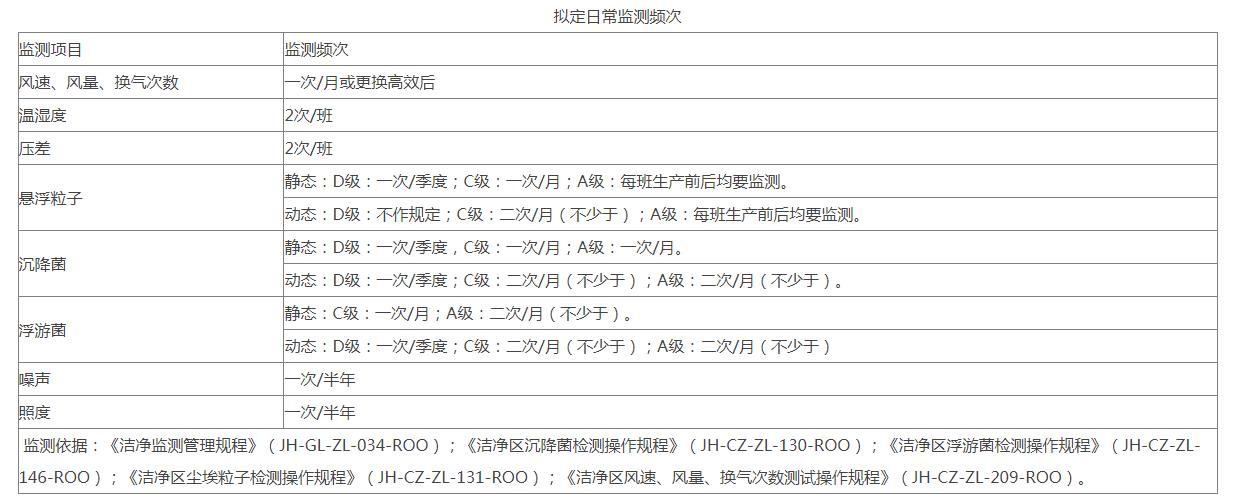 15、異常情況處理:系統運行確認過程中,應嚴格按照各標準操作程序、維護保養程序、設計要求進行操作和判定。出現個別項目不符合標準的結果時,應按下列程序進行處理:潔凈室空氣環境監測出現個別房間個別指標不合格的則應重新取樣一次,檢測不合格的指標;其它運行確認項目不符合要求時,應重新調試或請供應商現場調試;若屬設備方面的原因,必要時報確認小組,調整設備運行參數或對設備進行處理。  監測依據:《潔凈監測管理規程》(JH-GL-ZL-034-ROO);《潔凈區沉降菌檢測操作規程》(JH-CZ-ZL-130-ROO);《潔凈區浮游菌檢測操作規程》(JH-CZ-ZL-146-ROO);《潔凈區塵埃粒子檢測操作規程》(JH-CZ-ZL-131-ROO);《潔凈區風速、風量、換氣次數測試操作規程》(JH-CZ-ZL-209-ROO)。