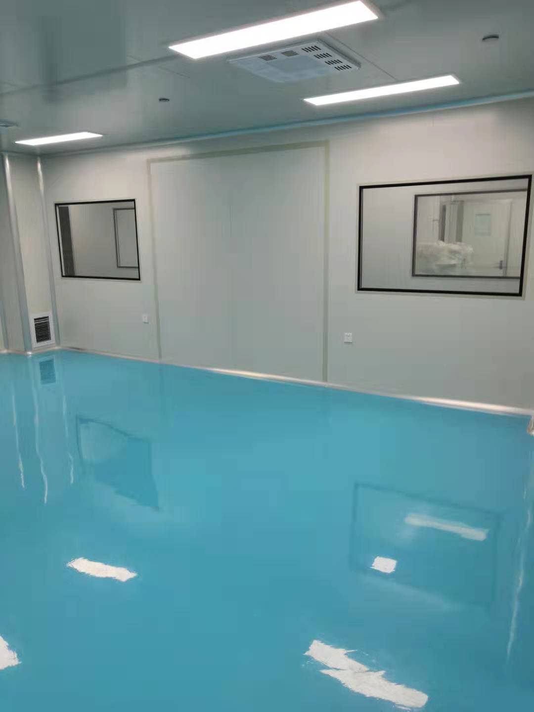2、口服固體制劑生產車間車間內部墻體及吊頂均為彩鋼結構,用中性密封膠密封縫隙;不銹鋼圓弧進行銜接和密封,一般生產區全部為水磨石地面,凈化區域為綠色環保環氧樹脂自流平地坪。門框和密封窗框均采用異形鋁材,潔凈區安全門為正面玻璃—臨時破開結構,在明顯位置設有破門工具。主要管道設置于技術夾層,并對連接部位進行密封。