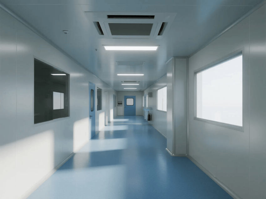 圍護系統:50mm厚醫療級純白彩鋼板,表面采用納米銀離子抗菌涂層(抗菌率≥99.9%),所有接縫處采用R30mm圓弧一體化處理;