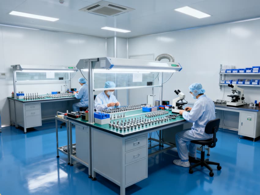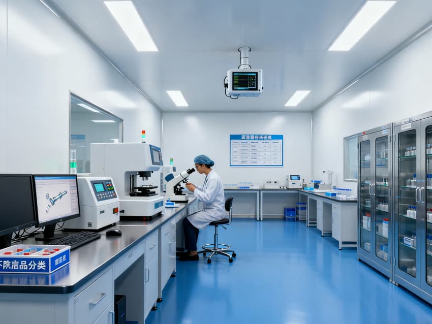 本無菌醫療器械生產廠房整體遵循GMP無菌生產標準,以藍色防靜電潔凈地坪搭配白色抗菌墻面,構建高效凈化體系,適配注射器、植入器械等無菌產品生產。凈化功能貫穿全空間,核心圍繞塵??刂?、微生物抑制及交叉污染防范,為產品質量筑牢第一道防線。