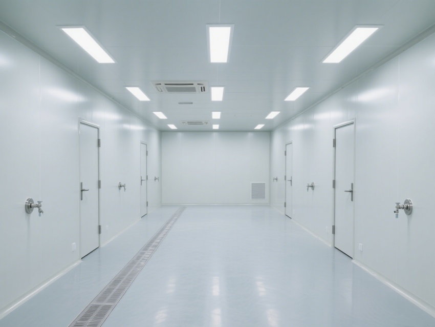 本次呈現的無塵無菌車間效果圖,整體采用極簡工業風設計,墻面、地面、頂面均選用一體化抑菌潔凈板材,色調以醫用級純白為主,搭配淺灰金屬收邊,視覺上凸顯整潔通透感。?