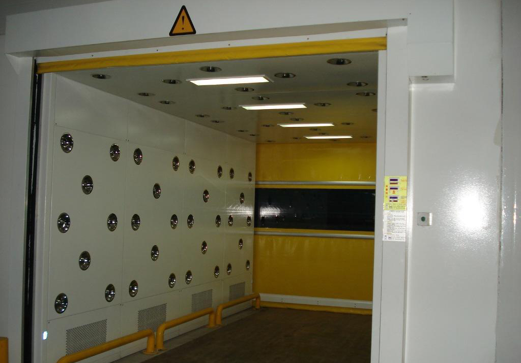 客戶在選擇貨淋室的時候應該根據工廠車間生產所需要的貨物周轉形式來選擇合適自身的形式;通常手動雙開門的適用于貨料非頻繁的情況下使用;移門風淋室適用小型推車,一般應用于電子產品車間;而快速卷簾門貨淋室一般適用于大型包裝車間的物流鏟車,叉車應用,可以快速的頻繁開啟;