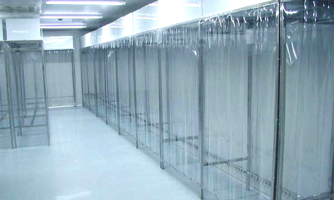 2、防靜電垂簾:0.3mm厚網格(韓國進口)防靜電效果好、透明度高、網格清晰、柔韌度好、不變形、不易老化;防塵除靜電。