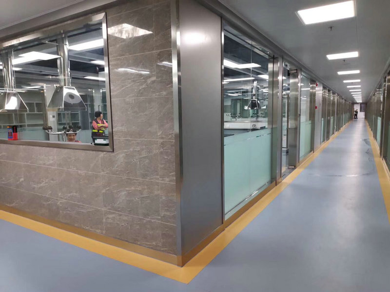 地面說明:地面鋪設(shè)2.0mm耐酸堿防火地坪(包括實(shí)驗(yàn)間與緩沖間和公用走廊)。