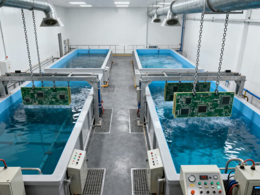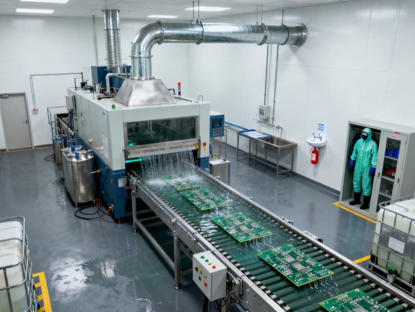 整體遵循電子制造潔凈標準,風格統一規整,地面采用灰色防靜電耐磨地坪,四周墻面為工業級白色潔凈涂層,精準匹配PCB、FPC等各類電路板的全流程制造需求。灰色地面具備強抗靜電、耐化學腐蝕、易清潔特性,可有效規避靜電擊穿電路板元件風險,耐受蝕刻、清洗等環節的試劑侵蝕,保障生產環境穩定;白色墻面采用無縫拼接工藝,減少粉塵吸附與清潔死角,搭配嵌入式潔凈照明,為精密操作提供清晰視野。