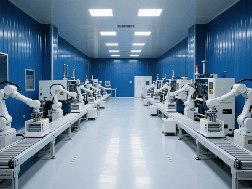 智能化配置:集成環境監測系統,實時顯示顆粒物、壓差及溫濕度數據;注塑機群配備智能看板,實現生產數據可視化。照明采用600x600mmLED潔凈平板燈,色溫5000K,照度均勻性達0.8以上。